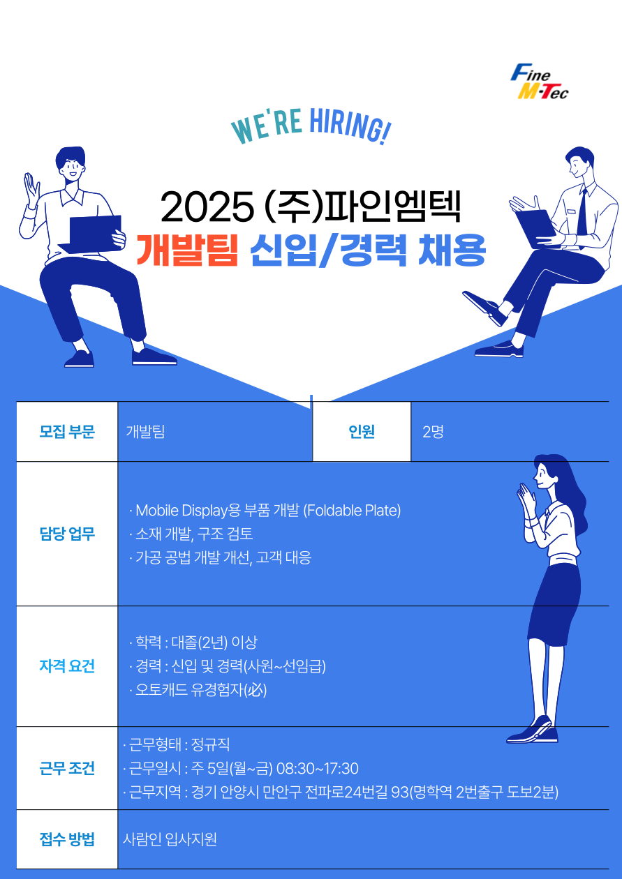 [채용공고] 2025 파인엠텍 개발팀 신입/경력 채용