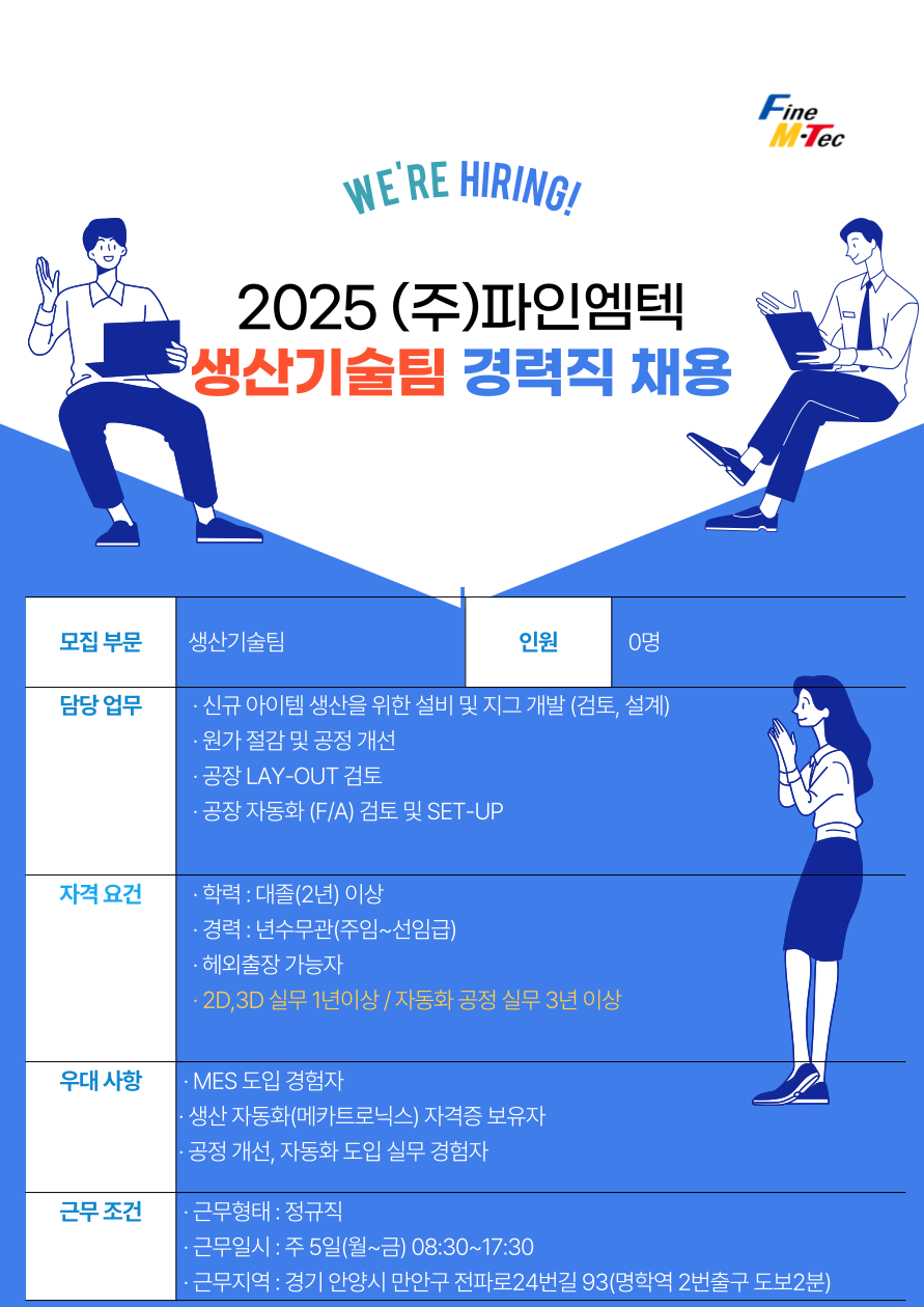 [채용공고] 2025 파인엠텍 생산기술팀 경력사원 채용